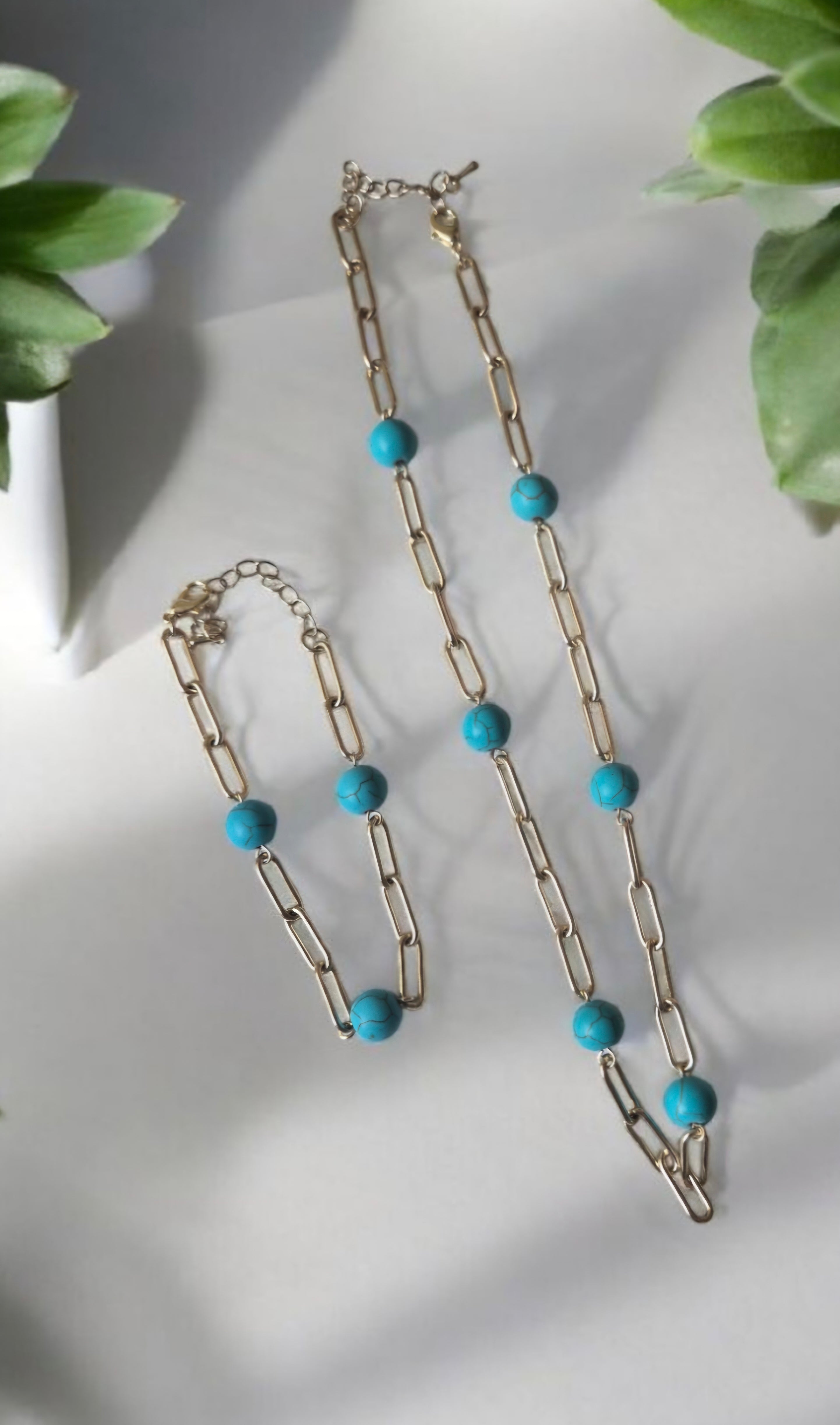 Descripción: Cadena "paper clips" con perlas naturales azul turquesa, combina con todooooo.
