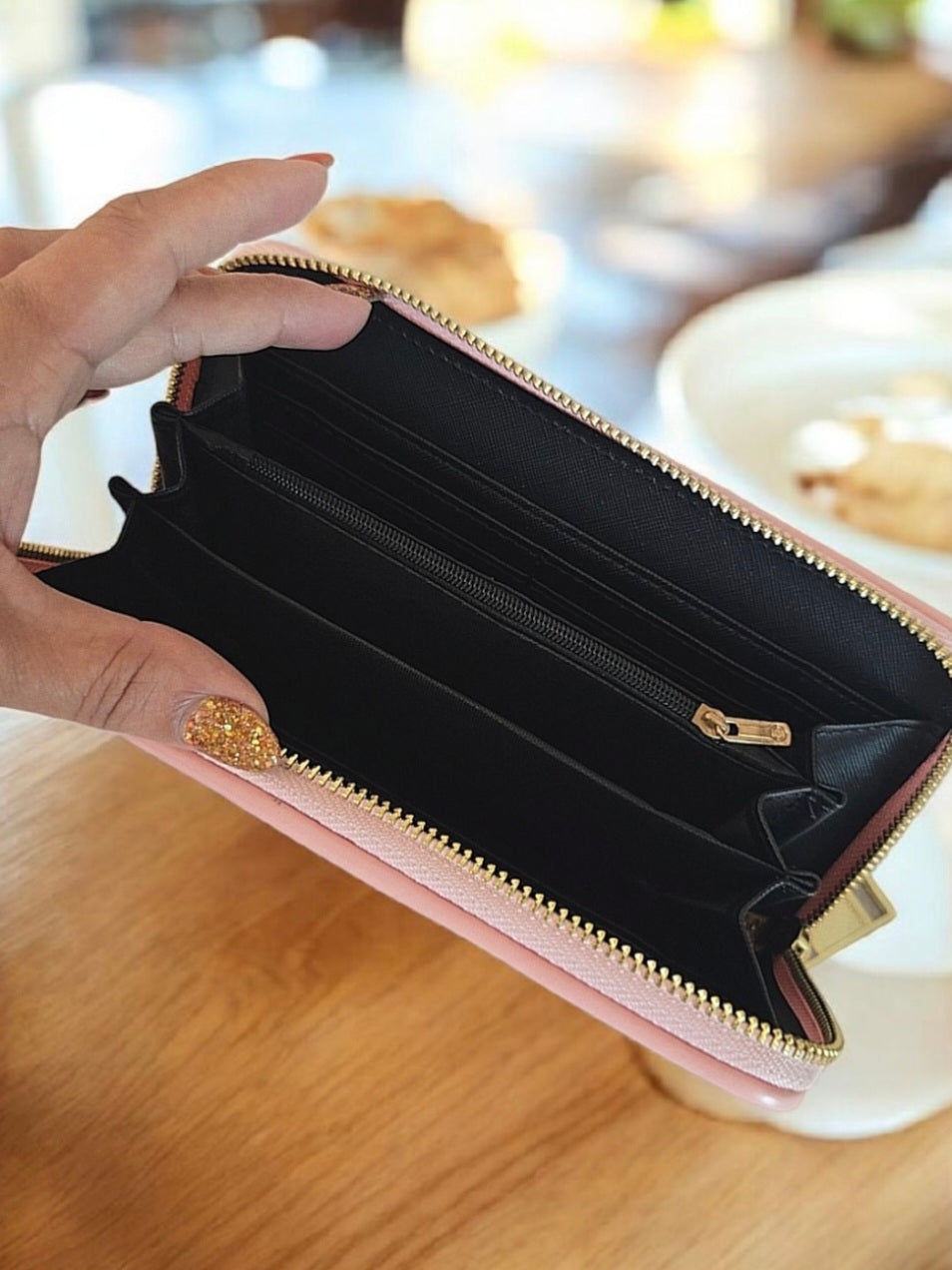 Descripción: Wallet con un toque de color rosa chic, tendrás todo organizado con estilo.